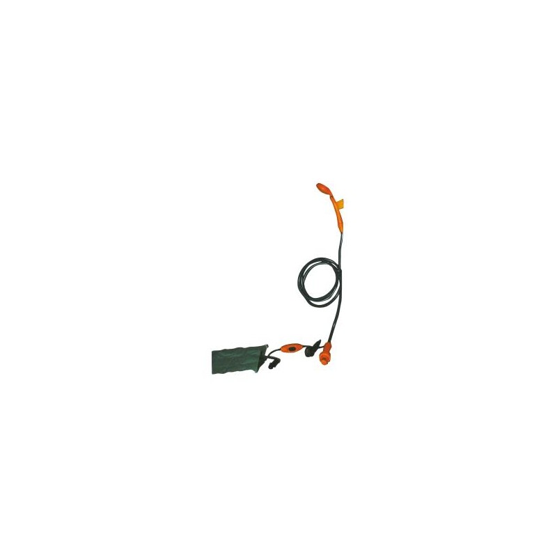 Ducha de viaje con potente bomba sumergible (8 l/min). Ducha, manguera, ventosa para teléfono(ducha) y cable conexión 12V con enchufe para encendedores.